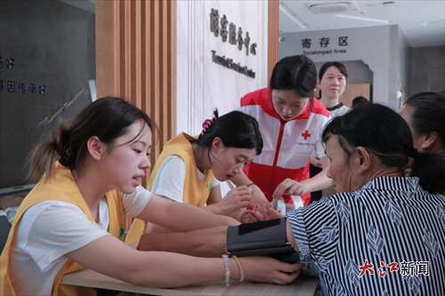 在东源村、山口岩村等地,志愿服务队结合专业特长,开展健康义诊与科普宣教活动,为村民提供血压测量、血糖测量、健康咨询等便民服务。围绕高血压、糖尿病、夏季中暑等常见健康问题,志愿队队员用通俗易懂的话语为村民讲解其原理。
