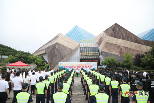 9月20日上午,萍乡武功山景区服务大队授旗仪式在游客服务中心广场举行,标志着景区服务大队将以全新身份亮相萍乡武功山景区。