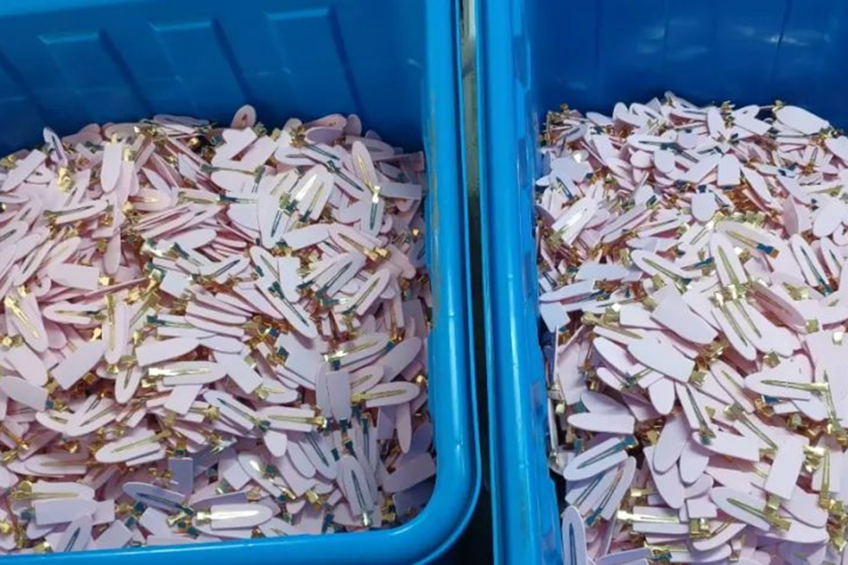 靠窗的位置,20岁的大学生兰姿茜正跟着57岁的村民朱奶奶学做发卡,她拿起一个金属夹,往粉色塑料发卡底座上一粘。“您看这样粘得结实不?” 她举着刚做好的发卡请教,指尖还沾着一点胶水的胶痕。朱奶奶放下手中的活计,用指腹按了按塑料发卡底座:“丫头手巧,这活儿简单,对准了粘牢就行,比纳鞋底容易多了。”
