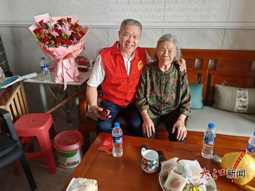 陈绍海看望刘建中烈士的妈妈王笃纯老人。