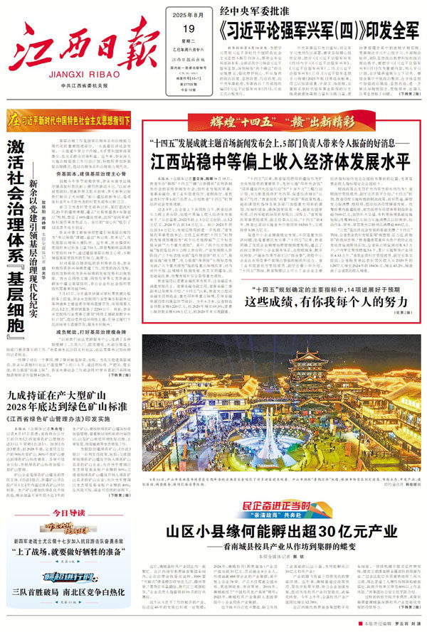 大江网/大江新闻客户端讯 (江西日报全媒体记者董文涛、陈晖)8月18日,江西举办“辉煌‘十四五’‘赣’出新精彩”系列新闻发布会的首场新闻发布会,组织省发展改革委、省委金融办、省工业和信息化厅、省财政厅、省农业农村厅等5部门负责人,介绍该省“十四五”时期经济社会发展成就。