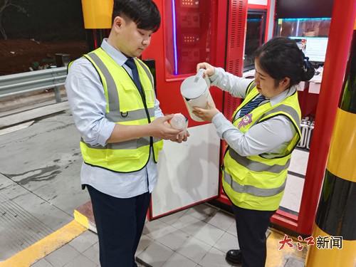 “太感谢了!这杯温水真是解了我们的燃眉之急!”9月21日22时左右,从长沙返程的李女士一家驾车途经江西省交通投资集团萍乡收费站时,焦急地向收费员求助,希望能获取温水冲泡奶粉。这一紧急需求,在收费站工作人员的帮助下,很快得到了解决。